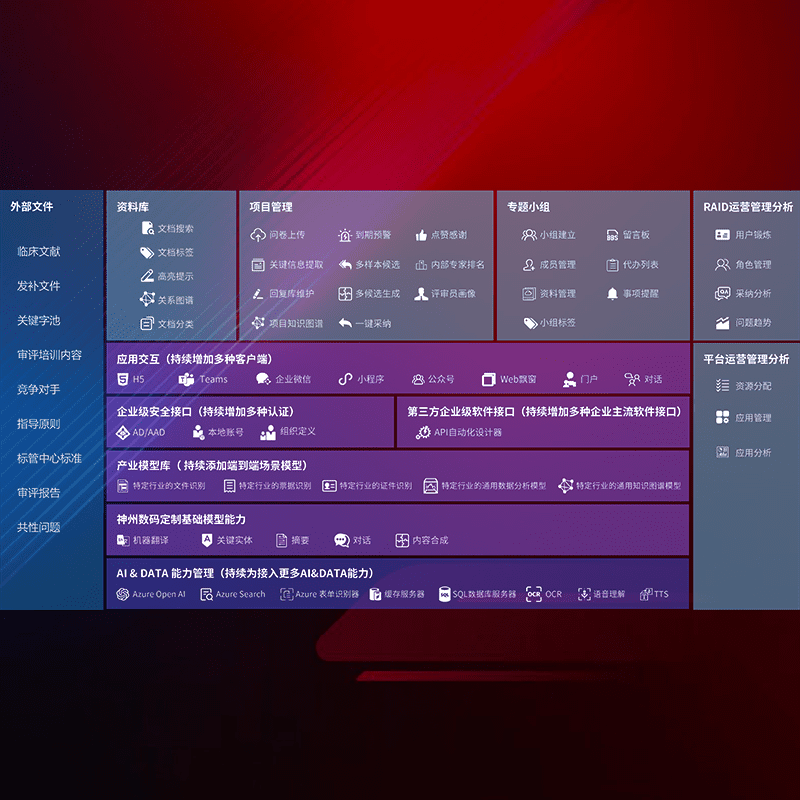 医疗器械产品上市前,,,,要熟悉严格与繁复评审标准,,,整理分析监管机构指导文件中的海量信息。。。。企业急需一个智能化解决方案,,,,提升知识管理效率,,提高评审通过率,,以提升其市场竞争力。。